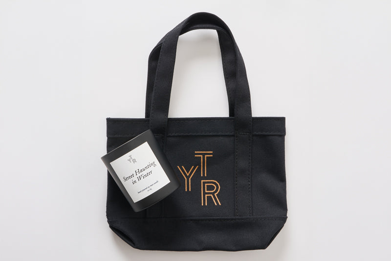 - Classic mini tote in black, designed as a companion to the print magazine